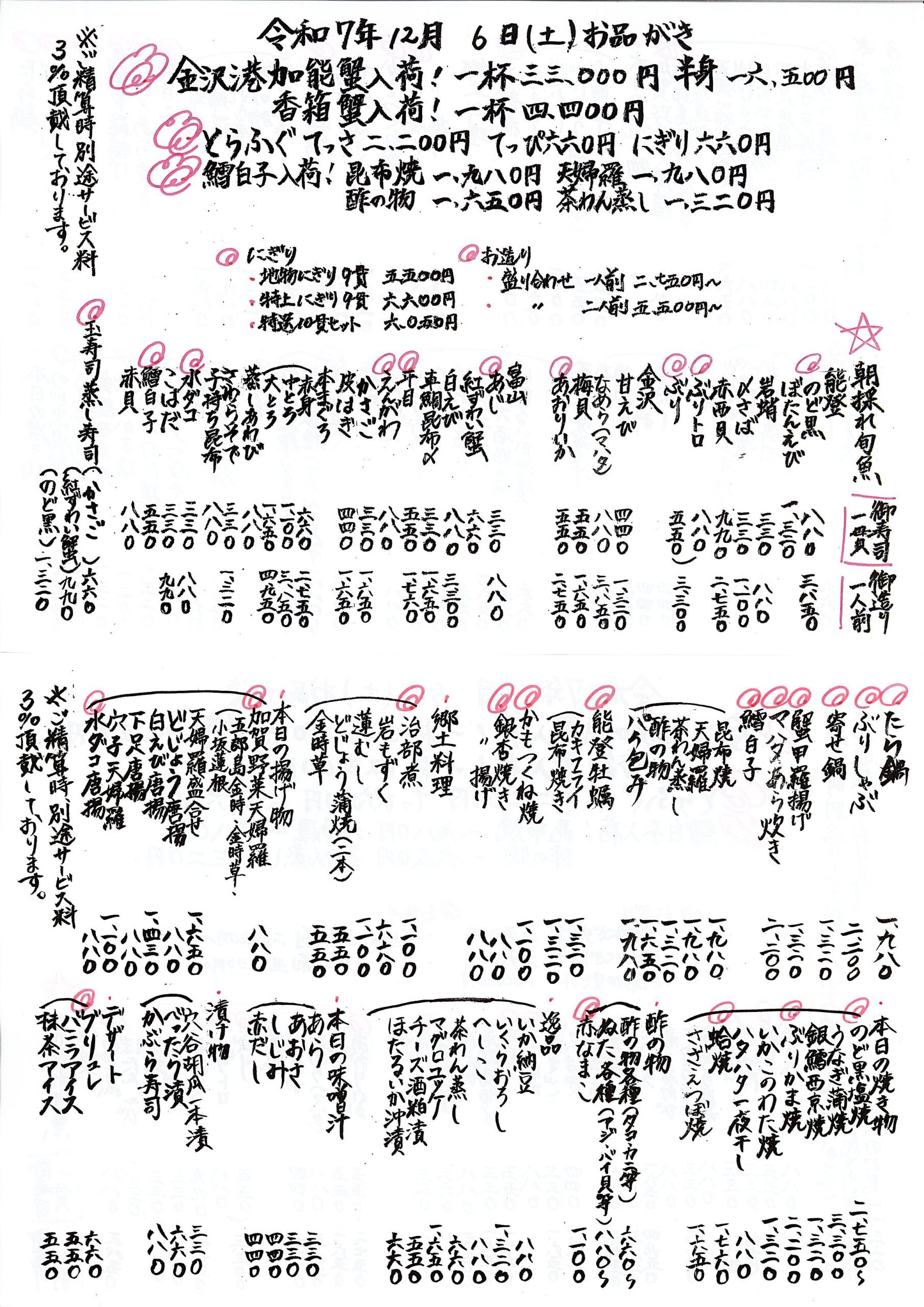 コースメニュー(二名様より承っております)